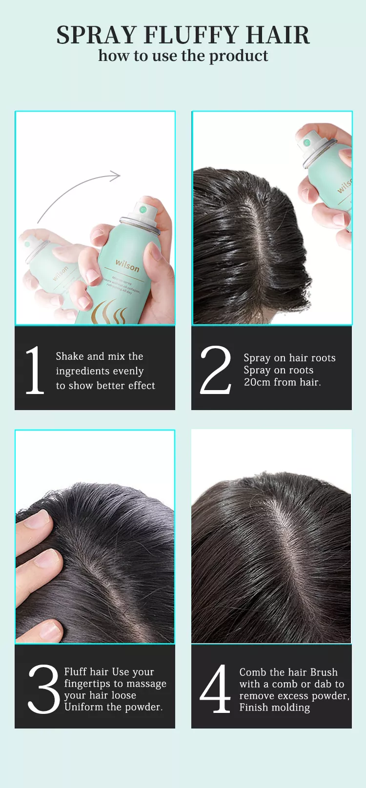 A Wilson Instant mosás nélküli hűvös száraz sampon spray sok olajat megmentett, átmenetileg kialszik, nem tudja megmosni a hajproblémát, a fő nyersanyag a rizskeményítő, a keményítő porózus szerkezetű, adszorpciós képességű, gyakori higroszkópos adszorpciós alapanyag, hatékonyan felszívja a felesleges olajat a fejbőrön, és megtisztítja a haj szennyeződéseit, permetezzen és adjon hozzá néhány elektrosztatikus komponenst a felületaktív termékekből. Használat után frissnek és természetesnek érzi magát.
