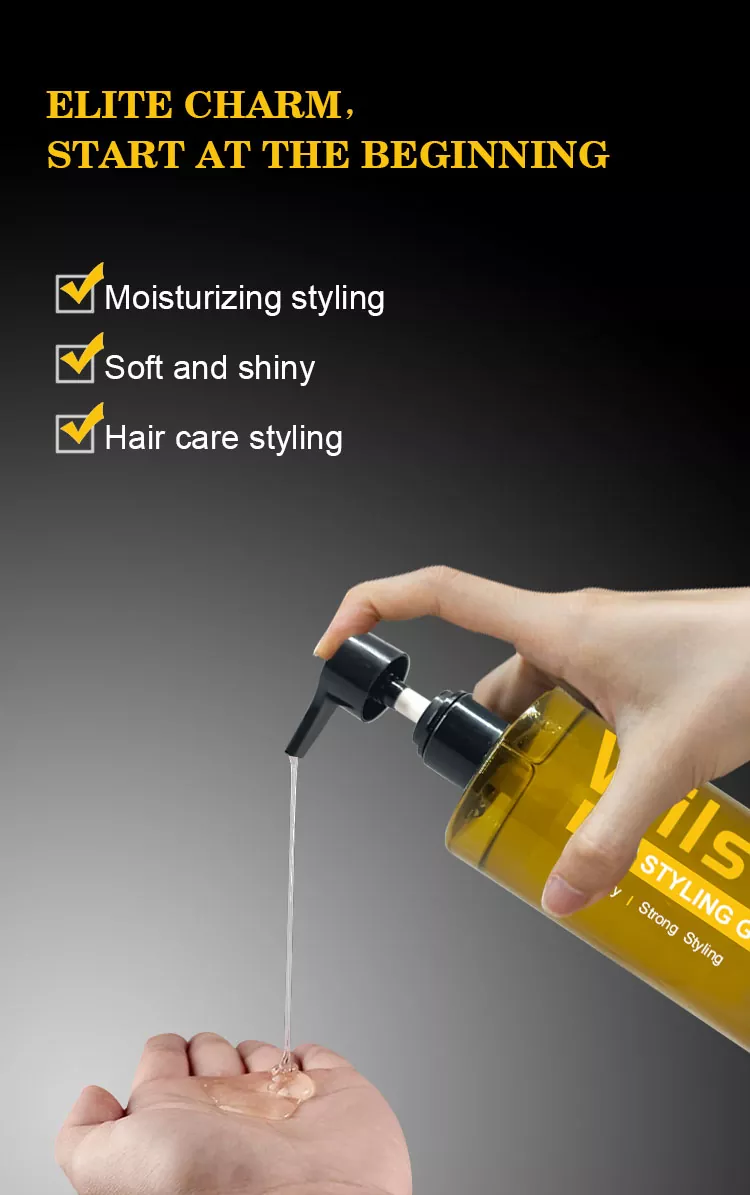 A Wilson Men's Ultra Smooth Seamless Hair Styling Gel kozmetikumok a hajra permetezett vagy felvitt kozmetikumok hajformázó és módosító hatására, az oldószer elpárologtatására és a hajra történő szárítására utalnak, hogy átlátszó filmet képezzenek, így a hajszál megkeményedik és megtartja a célnak megfelelő formát, hogy megfeleljen a különböző frizurák igényeinek.