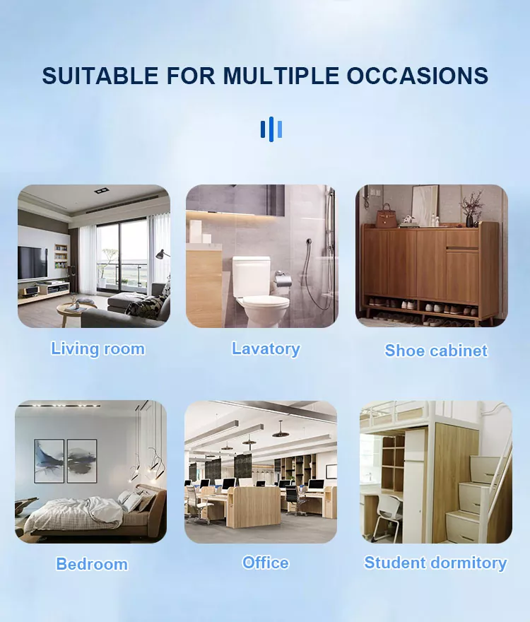 1. Családi használatra: A nappaliba, hálószobába, konyhába és más otthoni helyiségbe helyezve hatékonyan eltávolíthatja a füstszagot, a szagot, a nedvességet és így tovább.